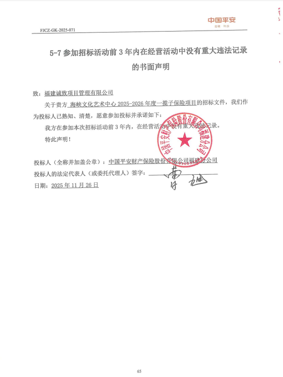海峡文化艺术中心2025-2026年度一揽子保险项目 |